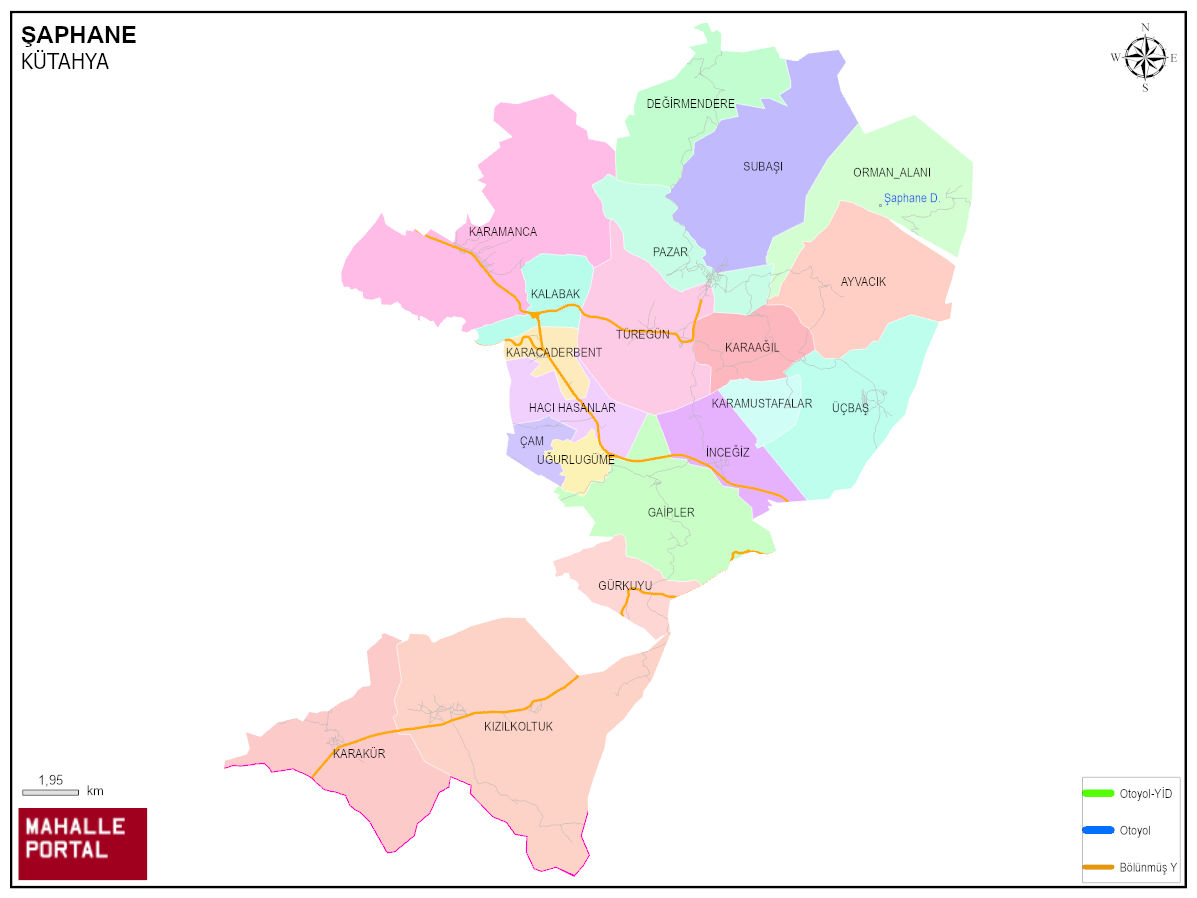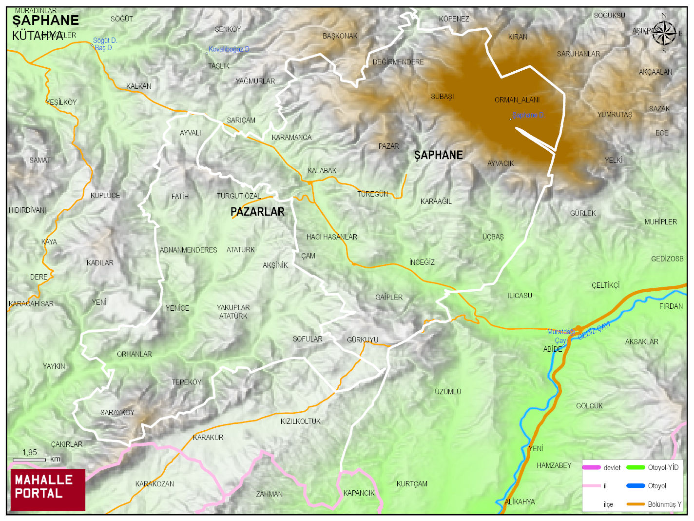 ŞAPHANE, KÜTAHYA Dijital Haritası | Güncel Mahalle ve İlçe Haritası