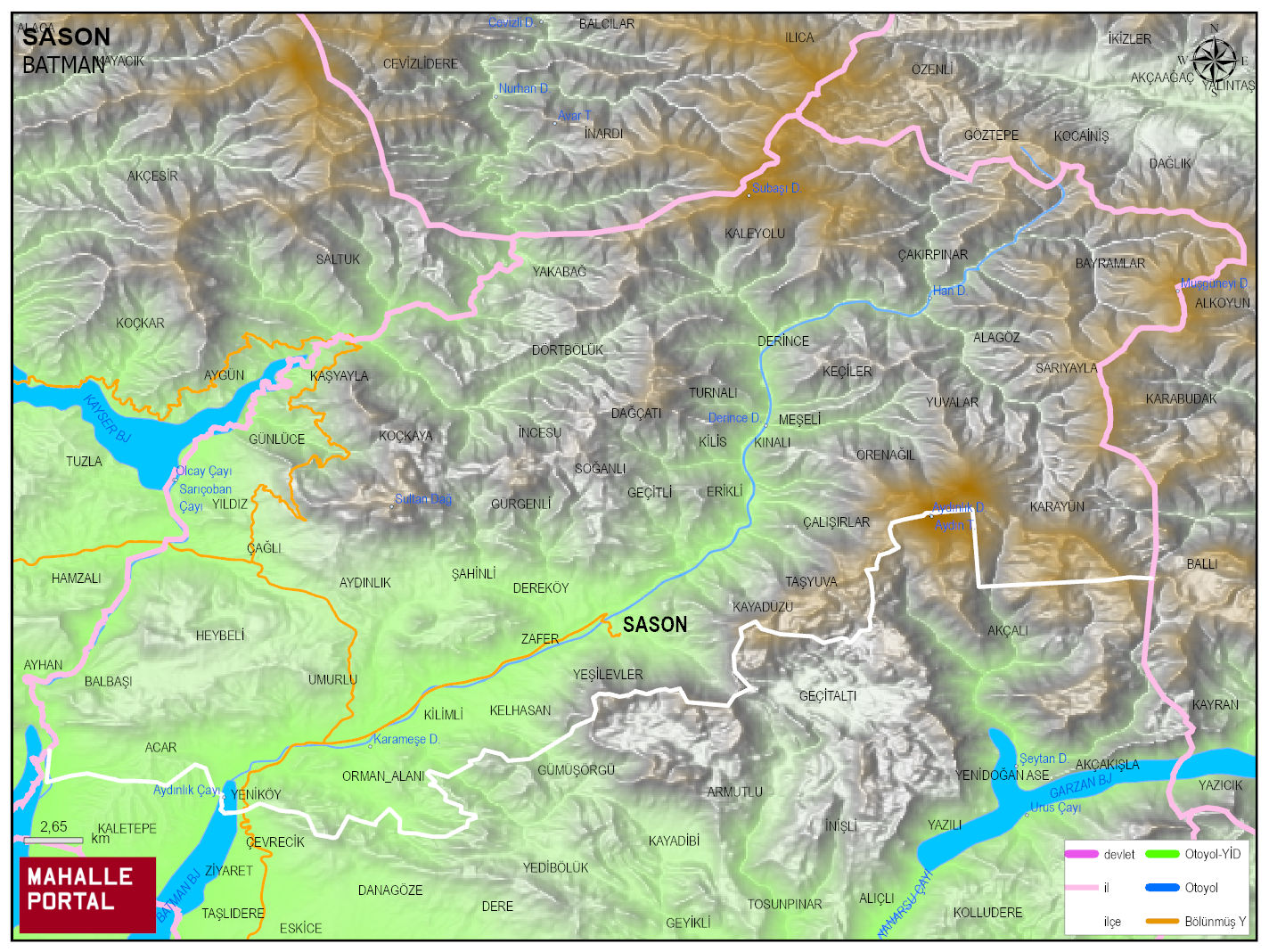 SASON Fiziki Haritası | Coğrafi Yapı ve Detaylı İlçe Haritası