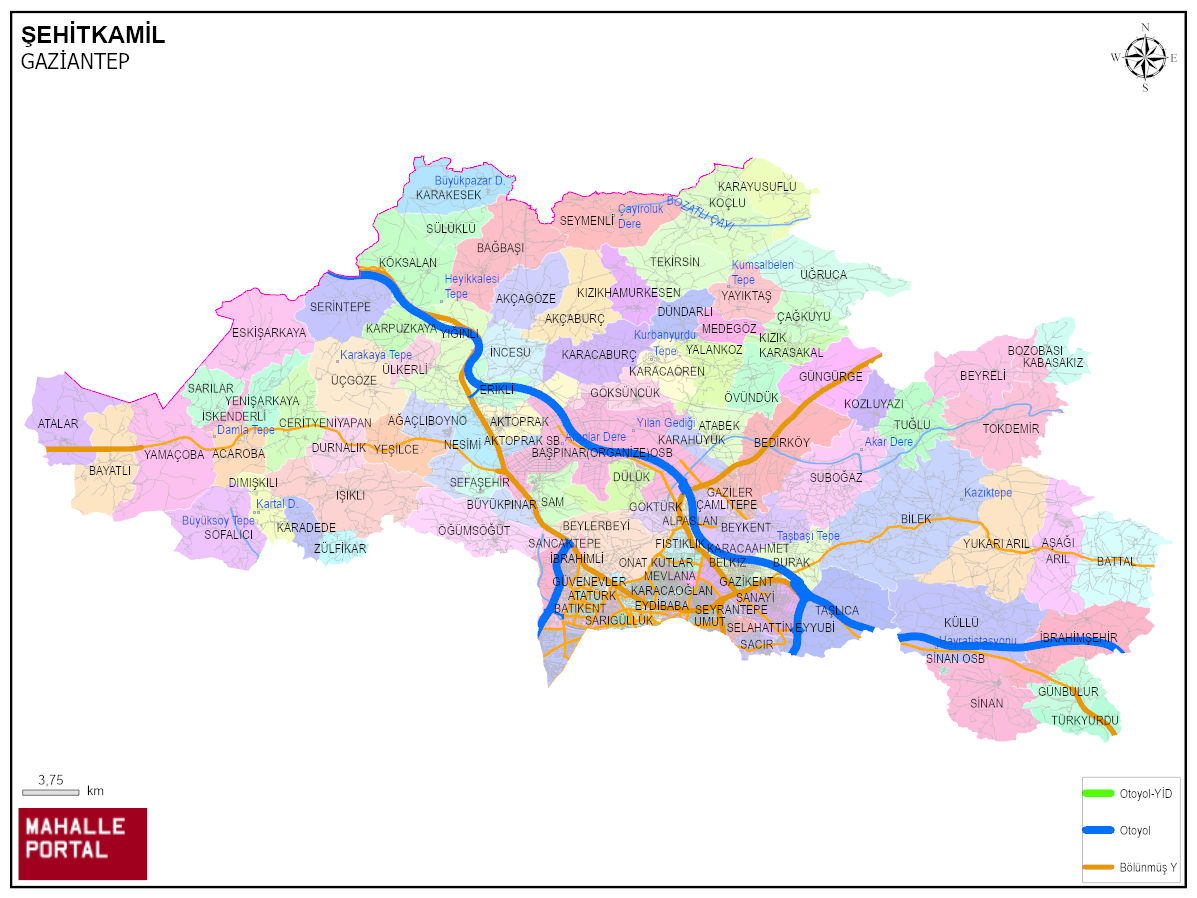 ŞEHİTKAMİL, GAZİANTEP Dijital Haritası | Güncel Mahalle ve İlçe Haritası