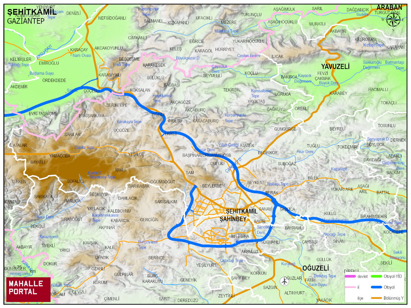 ŞEHİTKAMİL Fiziki Haritası | Coğrafi Yapı ve Detaylı İlçe Haritası