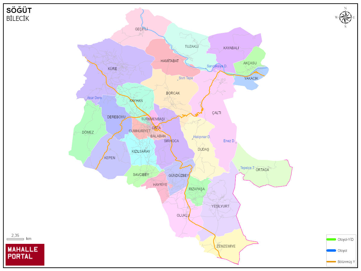 SÖĞÜT Mahalle Köy Haritası | İlçedeki Tüm Mahalle ve Köyler
