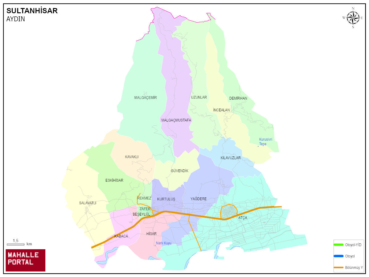 SULTANHİSAR, AYDIN Dijital Haritası | Güncel Mahalle ve İlçe Haritası