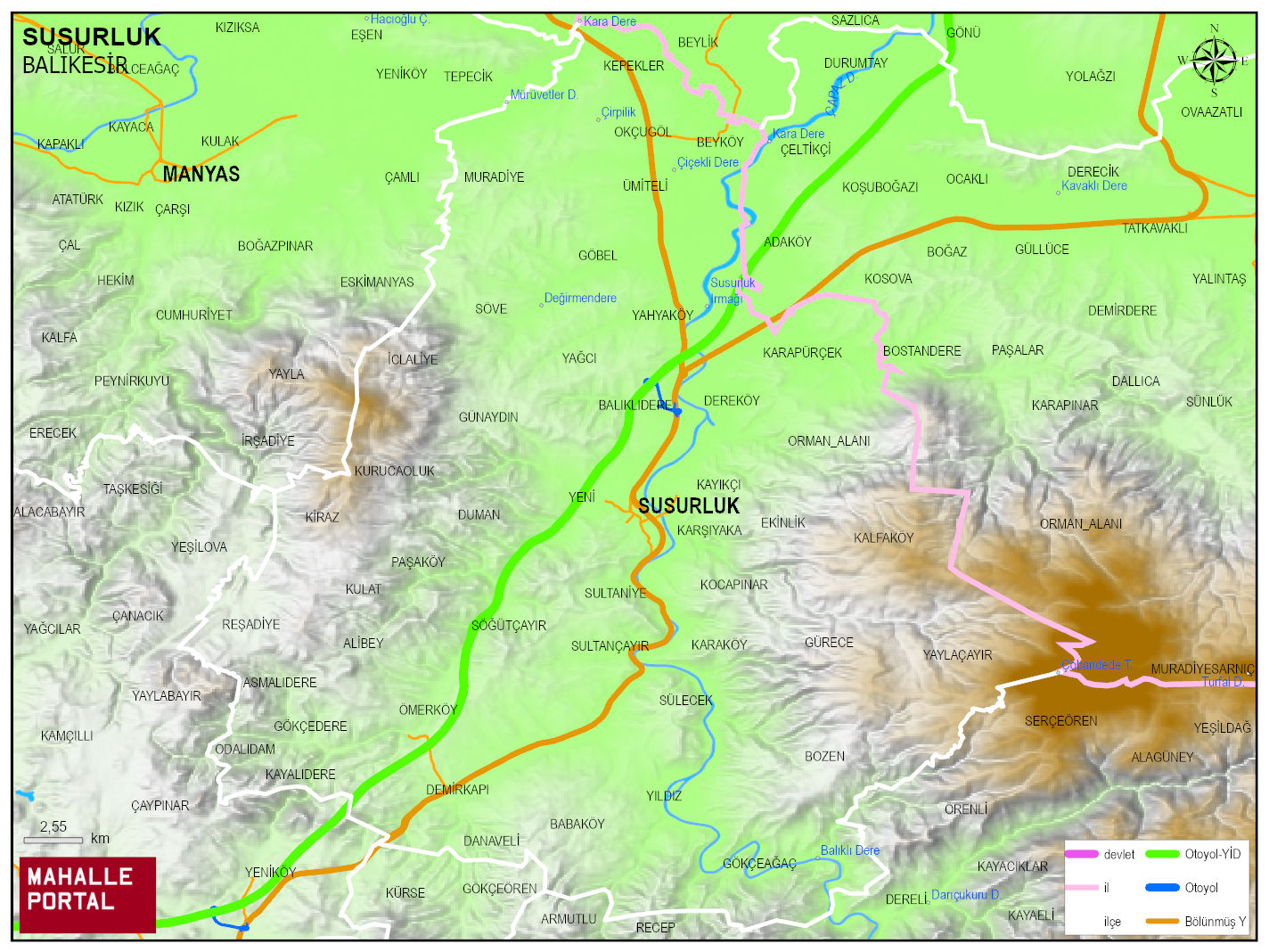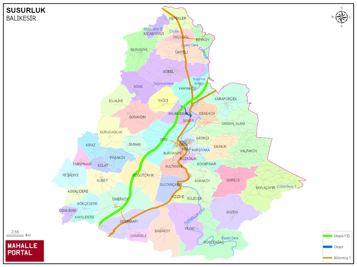 SUSURLUK, BALIKESİR Dijital Haritası | Güncel Mahalle ve İlçe Haritası