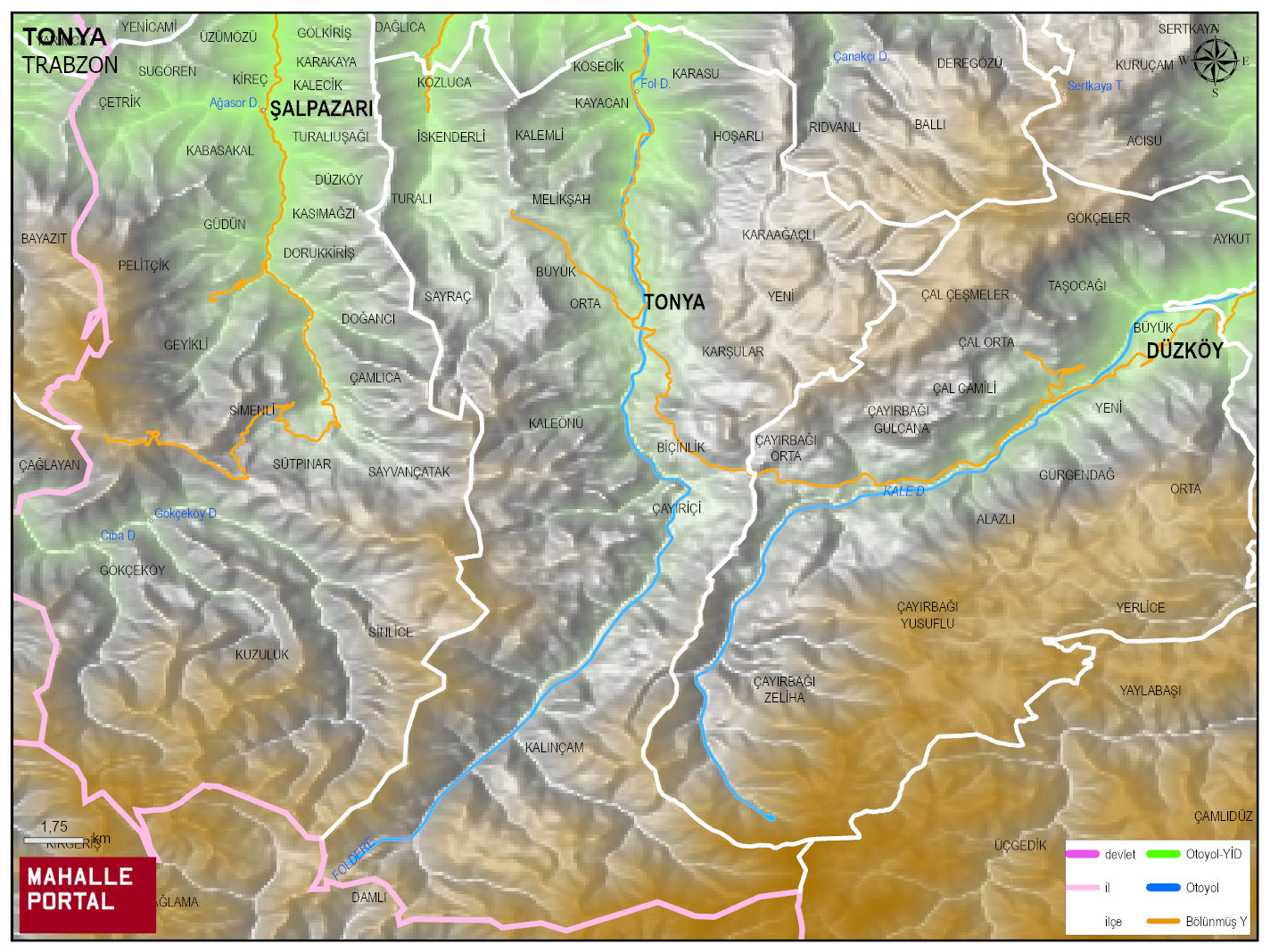TONYA Mahalle Köy Haritası | İlçedeki Tüm Mahalle ve Köyler