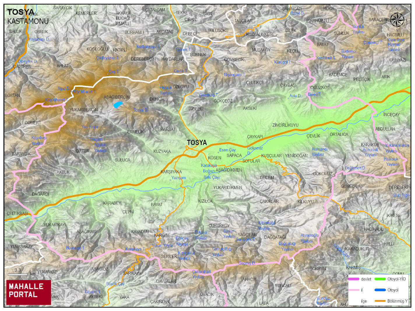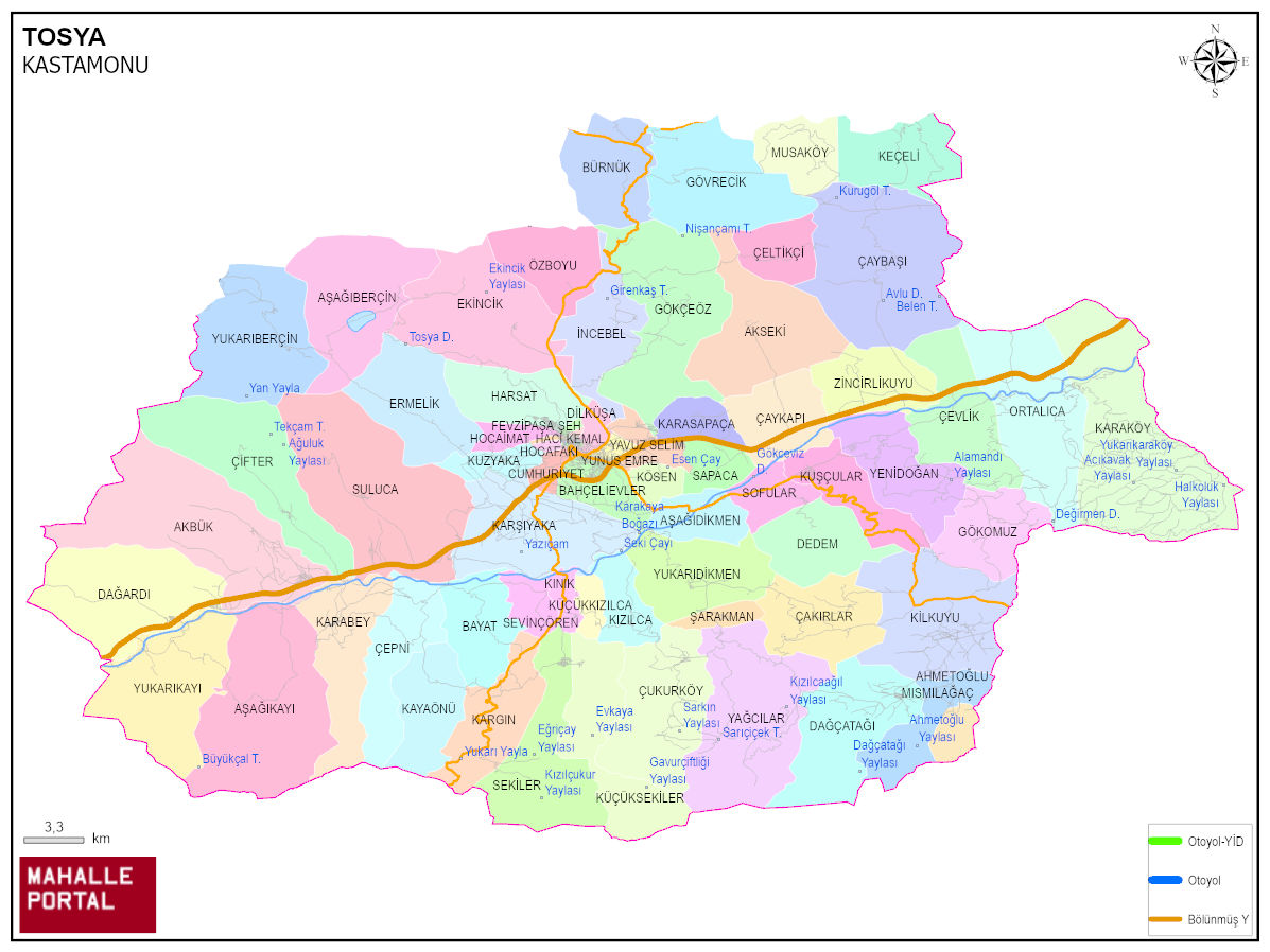 TOSYA, KASTAMONU Dijital Haritası | Güncel Mahalle ve İlçe Haritası