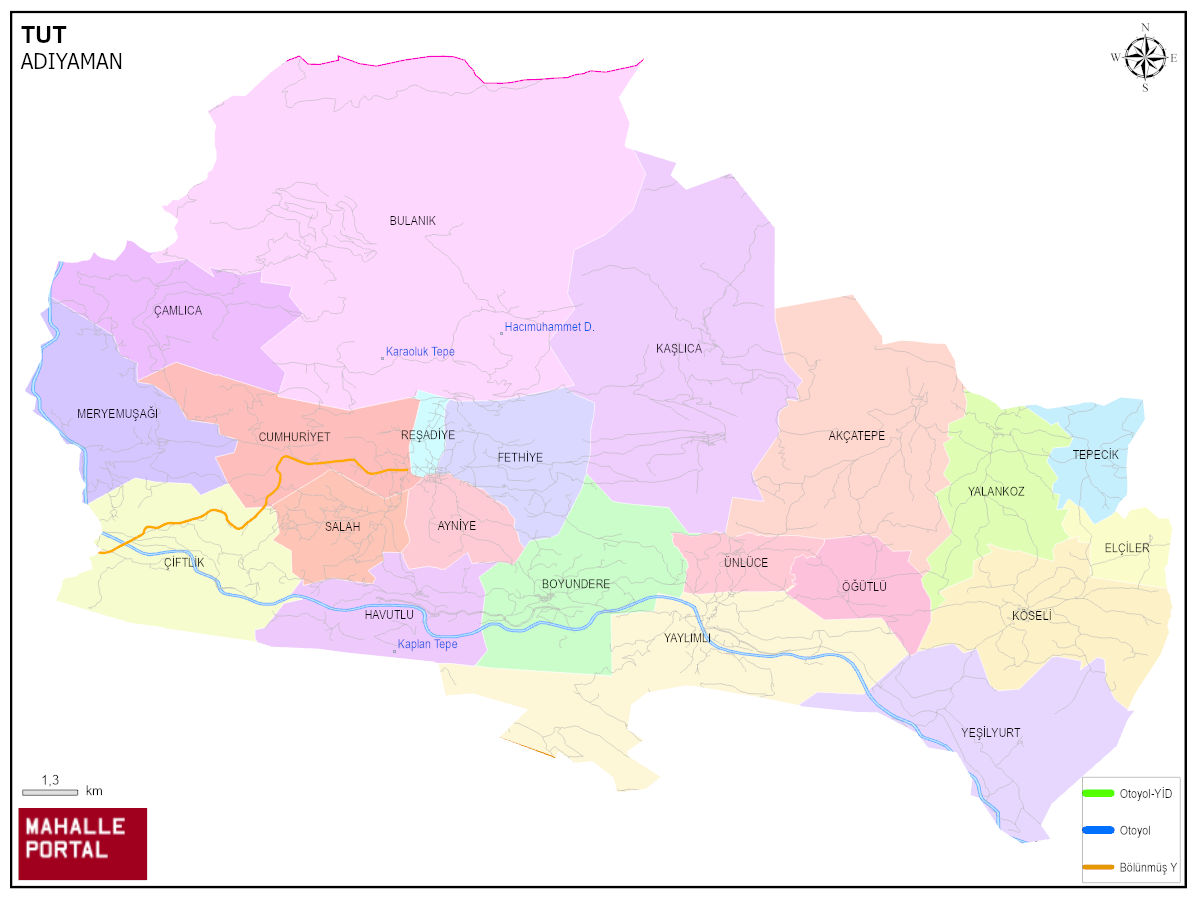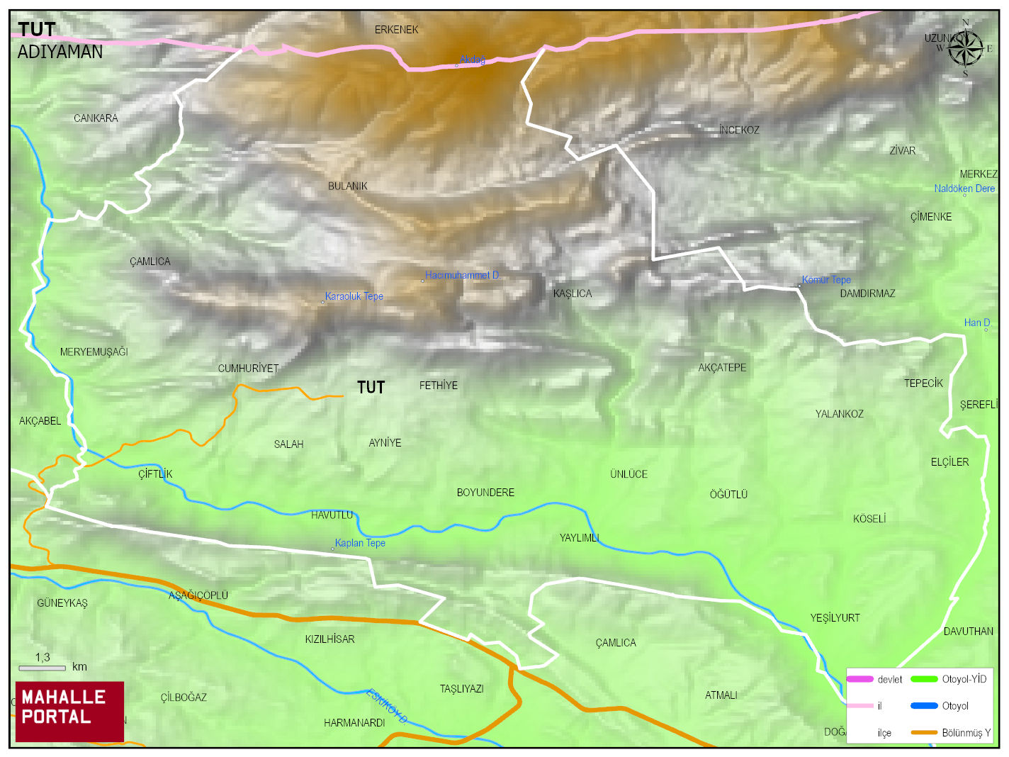 TUT, ADIYAMAN Dijital Haritası | Güncel Mahalle ve İlçe Haritası