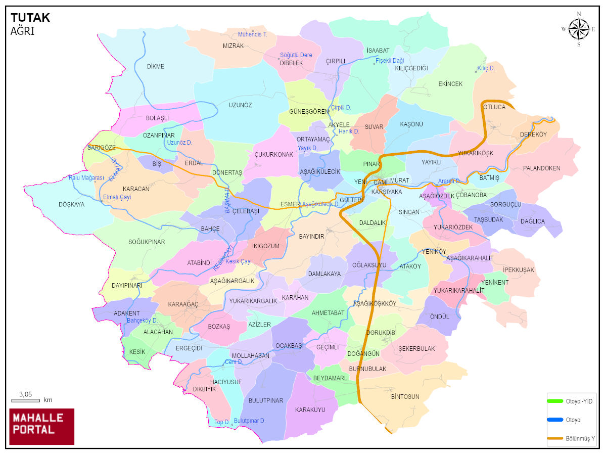 TUTAK, AĞRI Dijital Haritası | Güncel Mahalle ve İlçe Haritası