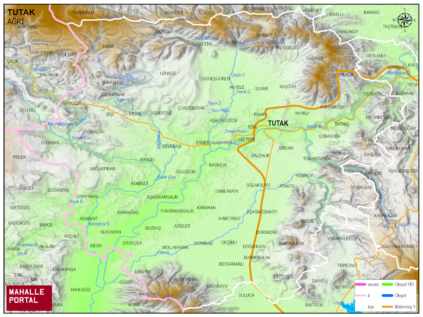 TUTAK Mahalle Köy Haritası | İlçedeki Tüm Mahalle ve Köyler