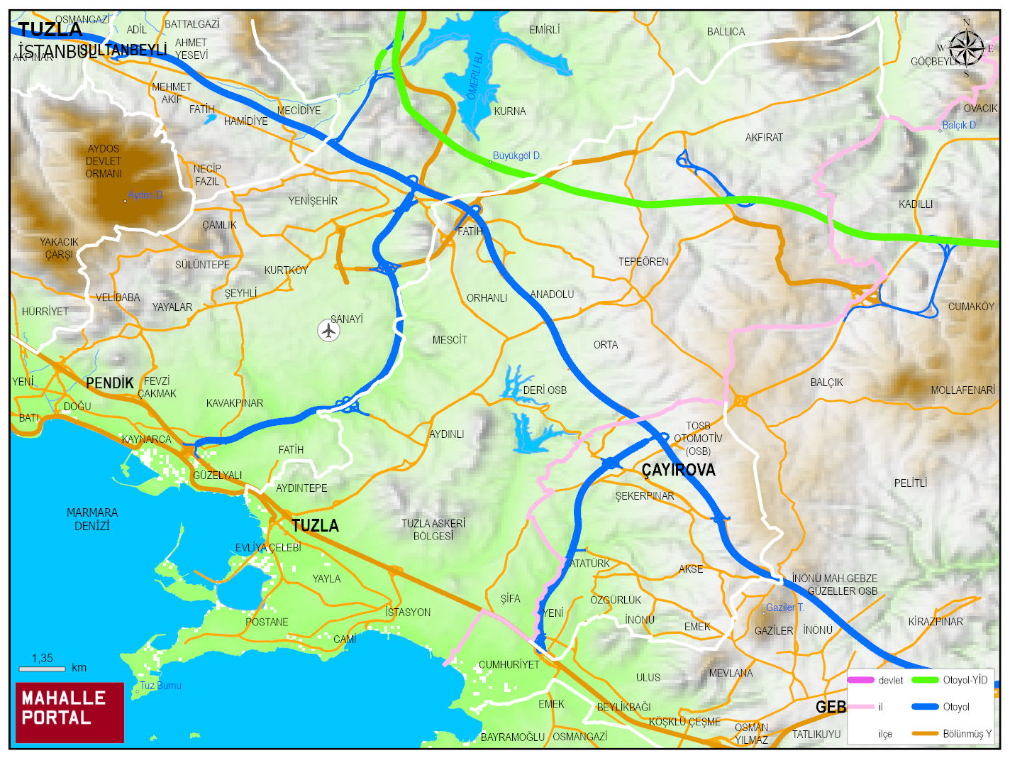 TUZLA, İSTANBUL Dijital Haritası | Güncel Mahalle ve İlçe Haritası