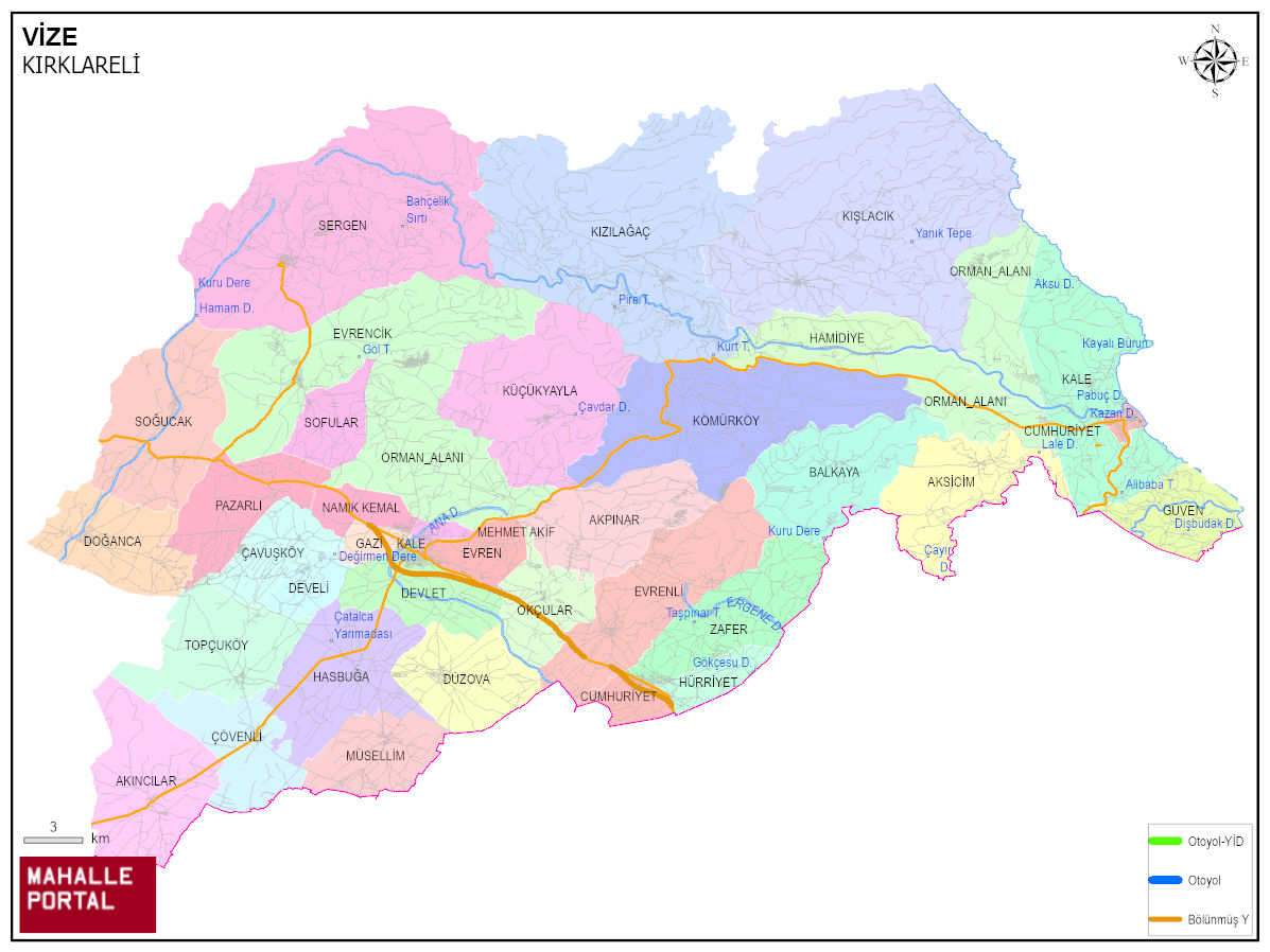 VİZE Mahalle Köy Haritası | İlçedeki Tüm Mahalle ve Köyler