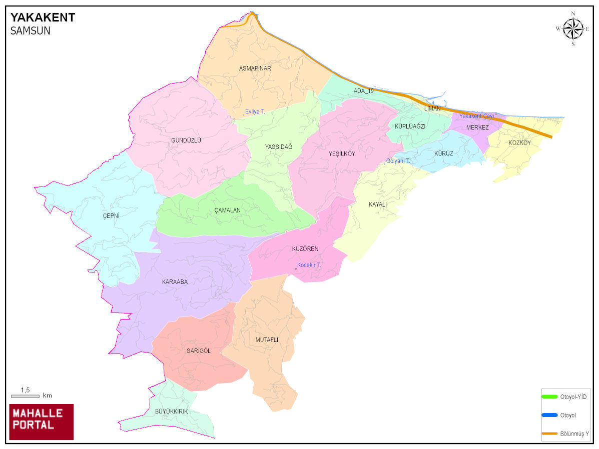 YAKAKENT, SAMSUN Dijital Haritası | Güncel Mahalle ve İlçe Haritası