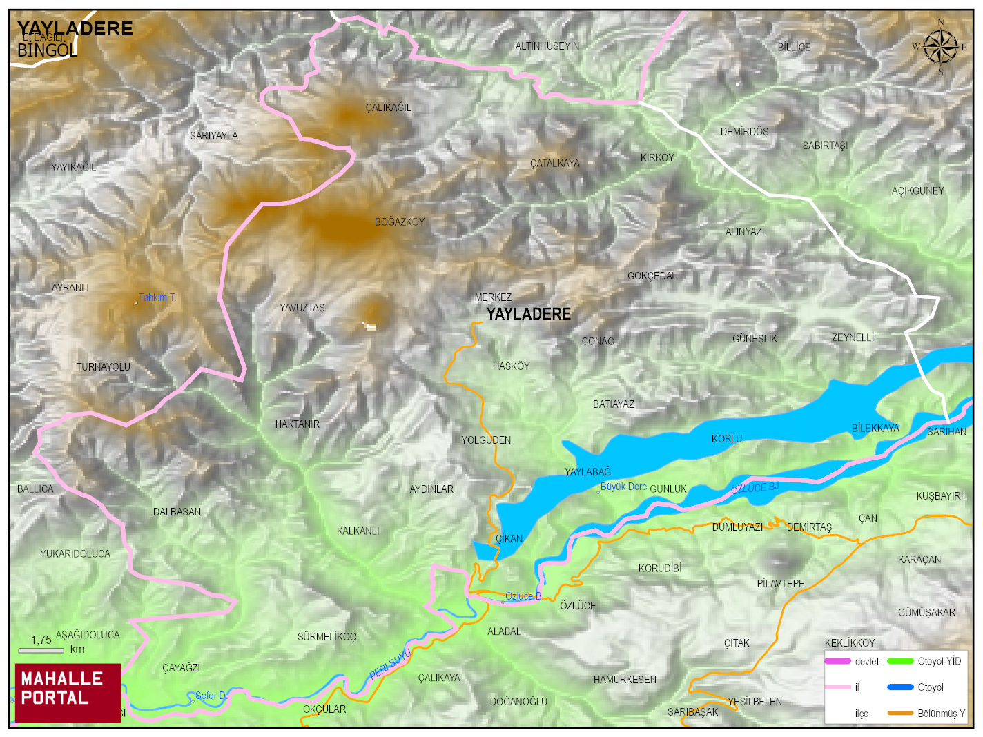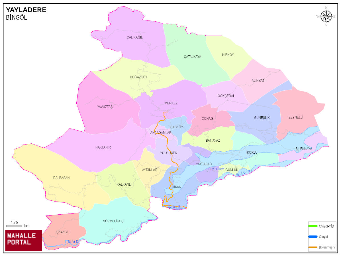 YAYLADERE, BİNGÖL Dijital Haritası | Güncel Mahalle ve İlçe Haritası