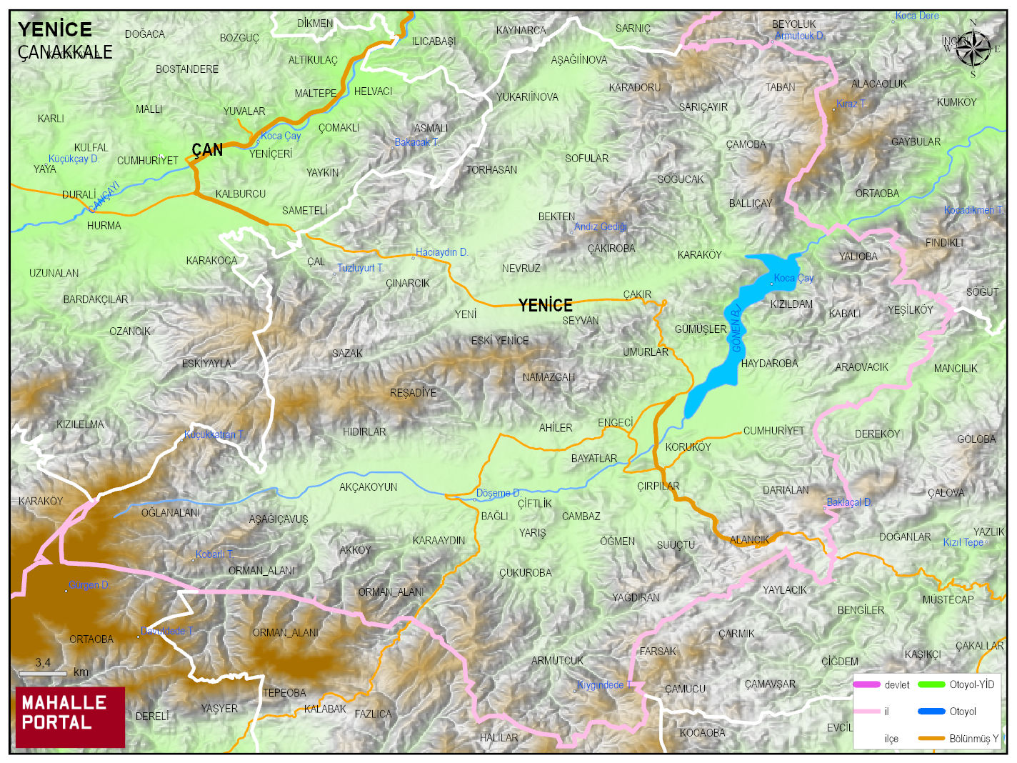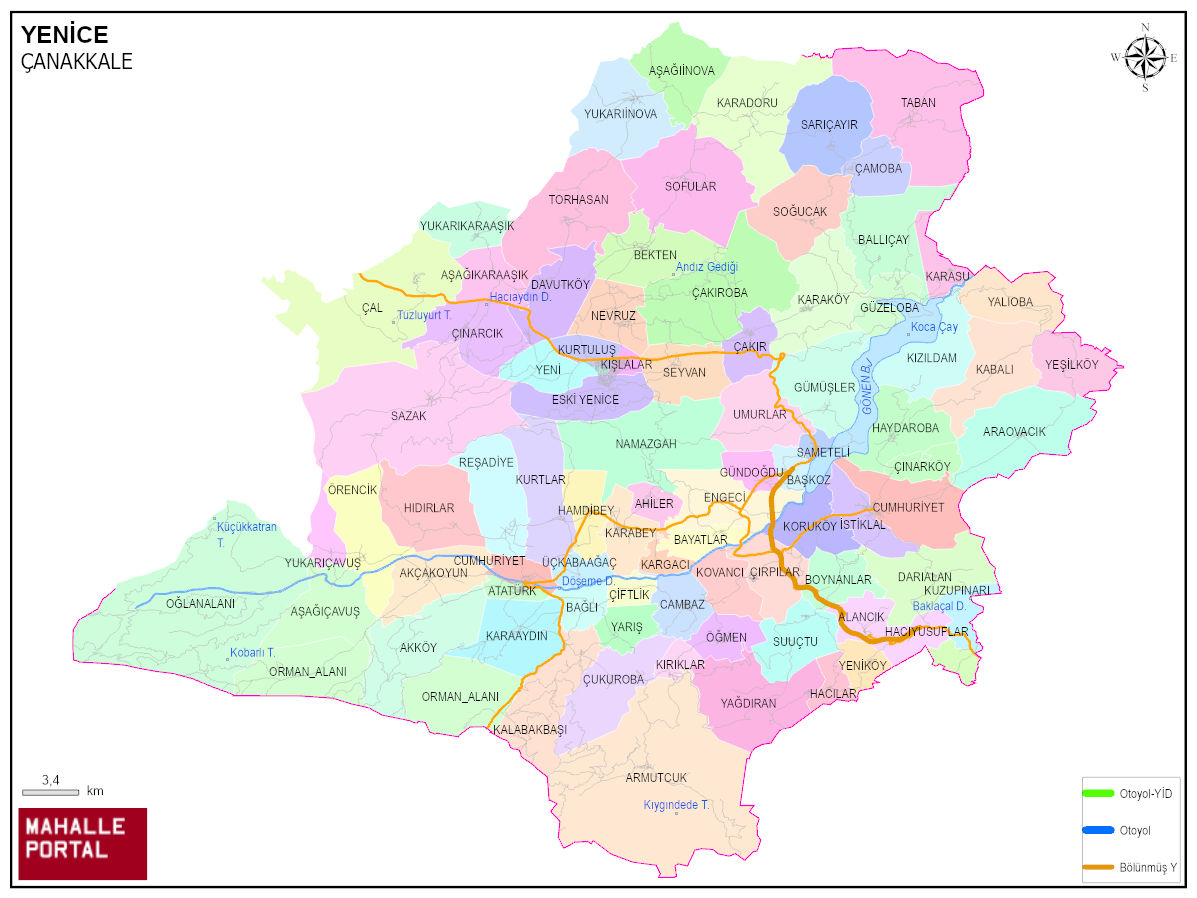 YENİCE, ÇANAKKALE Dijital Haritası | Güncel Mahalle ve İlçe Haritası