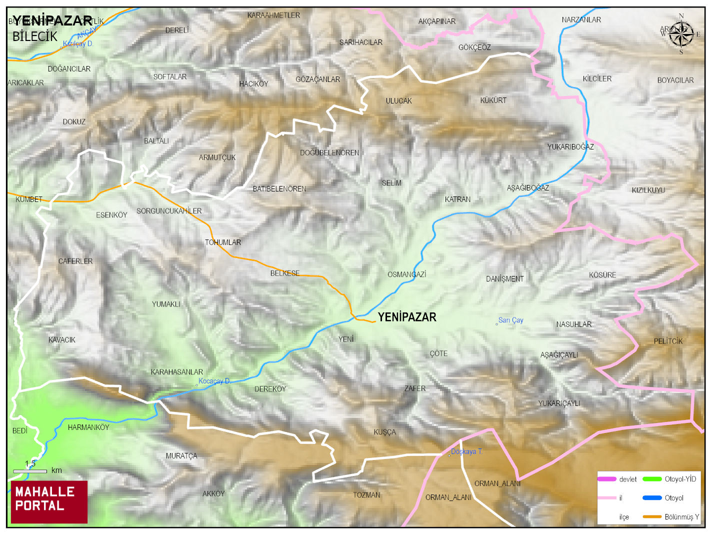 YENİPAZAR, BİLECİK Dijital Haritası | Güncel Mahalle ve İlçe Haritası