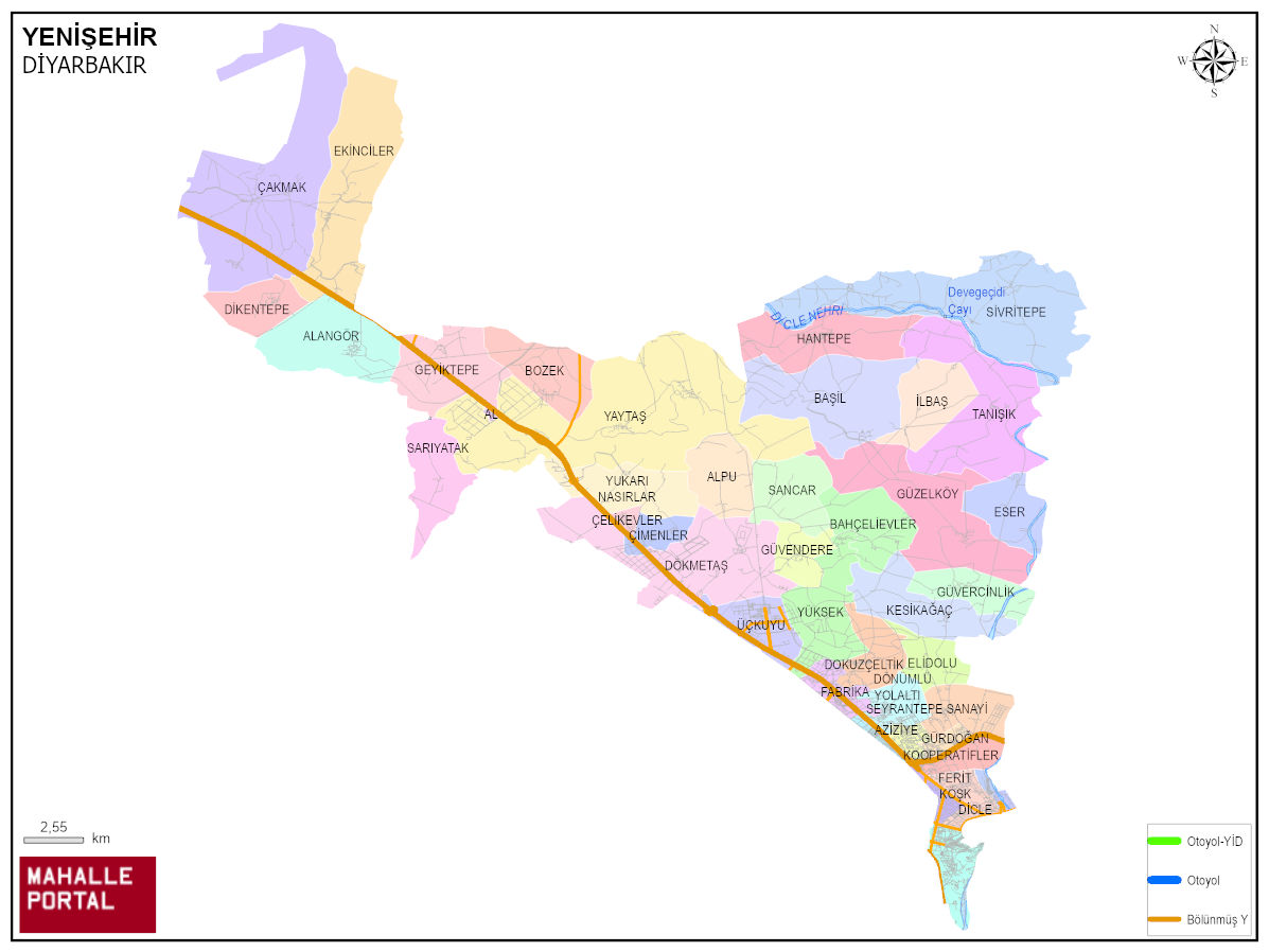 YENİŞEHİR, DİYARBAKIR Dijital Haritası | Güncel Mahalle ve İlçe Haritası