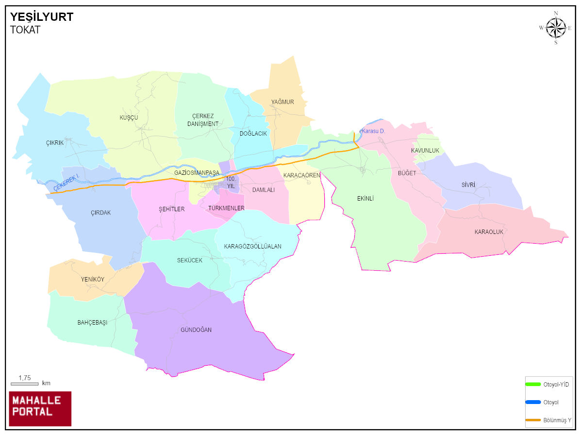 YEŞİLYURT, TOKAT Dijital Haritası | Güncel Mahalle ve İlçe Haritası